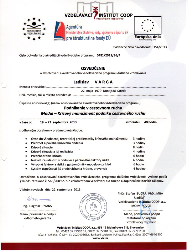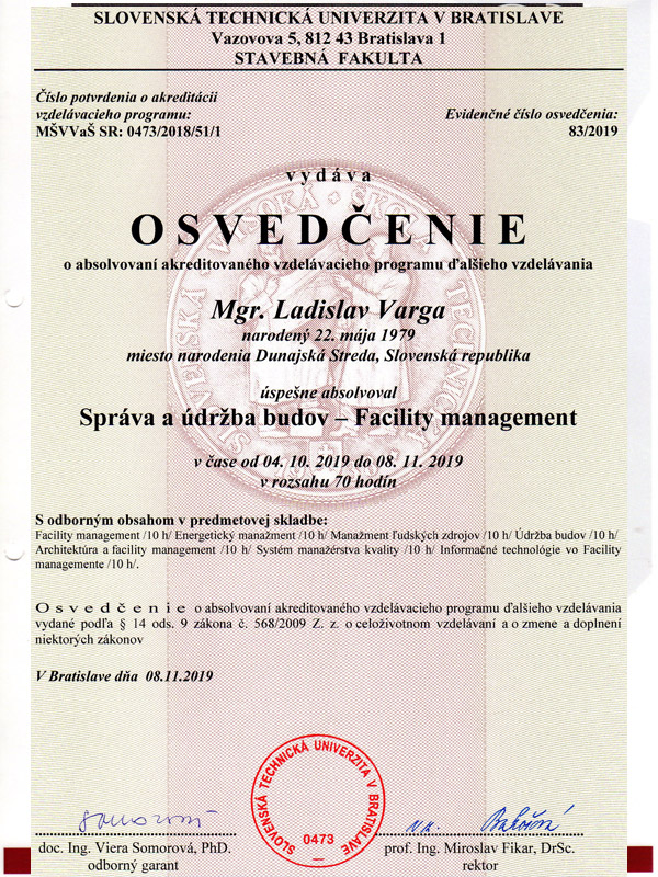Hlavným záberom spoločnosti je manažérske poradenstvo pri uvedení nových priestorov do prevádzky a vypracovanie prevádzkovej dokumentácie.